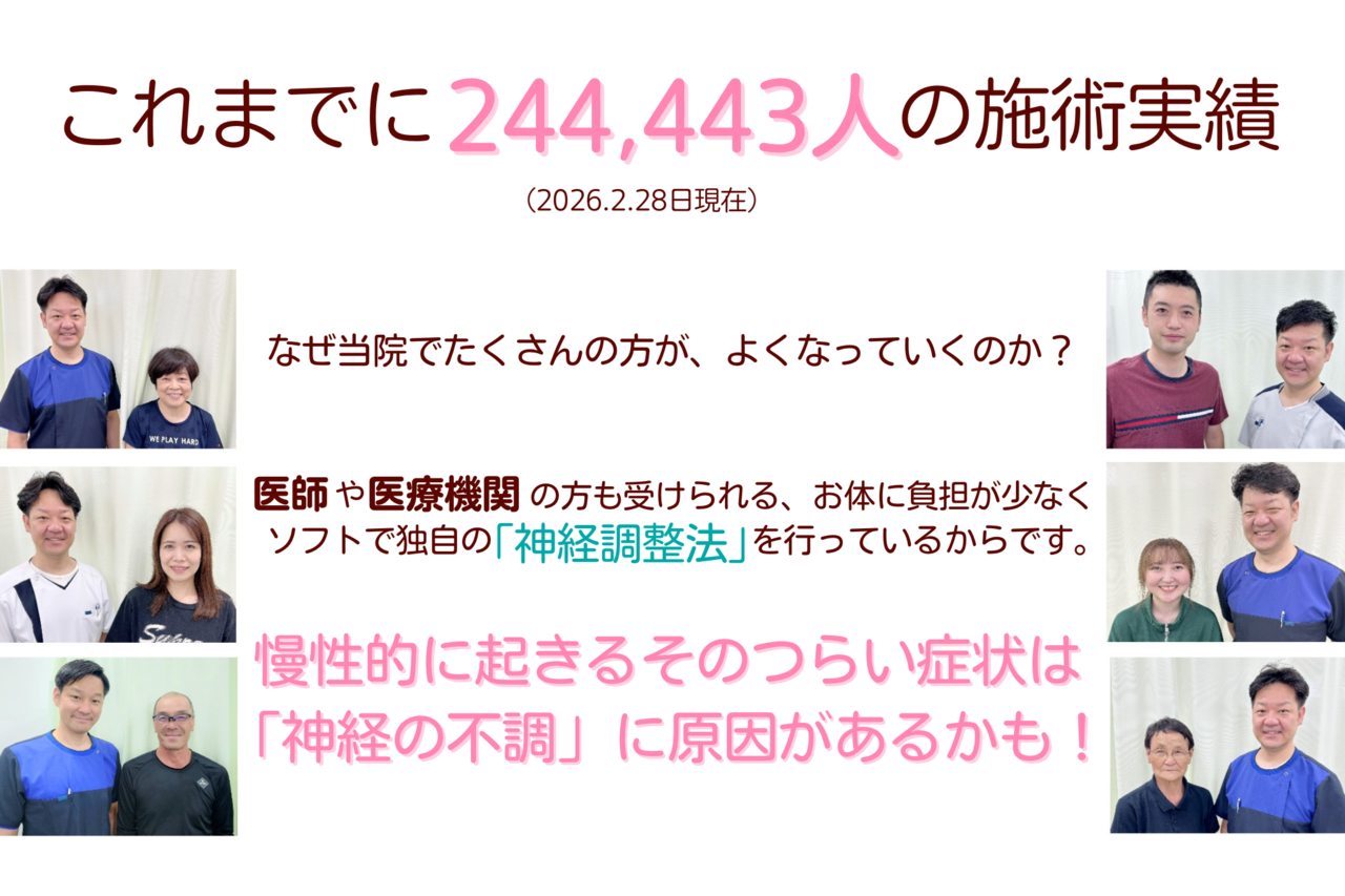 その多くの経験をもって慢性的な不調を、当院のソフトなカイロプラティック・整体にて根本から改善へと目指していきます。